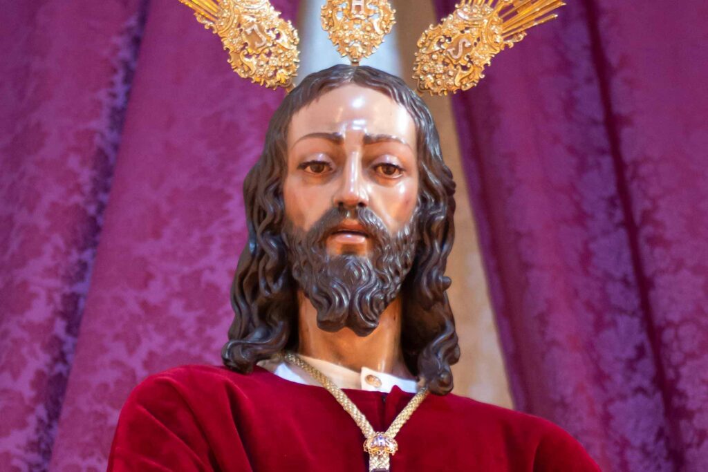 Es una talla completamente anatomizada, sin articular y con sudario tallado ceñido al cuerpo, realizada en madera de cedro de primera calidad, de 1,83 metros de altura, y con policromía al óleo, siguiendo los cánones estéticos del neobarroco sevillano. Lleva seis candelabros tallados en la misma madera con un total de cincuenta luces.