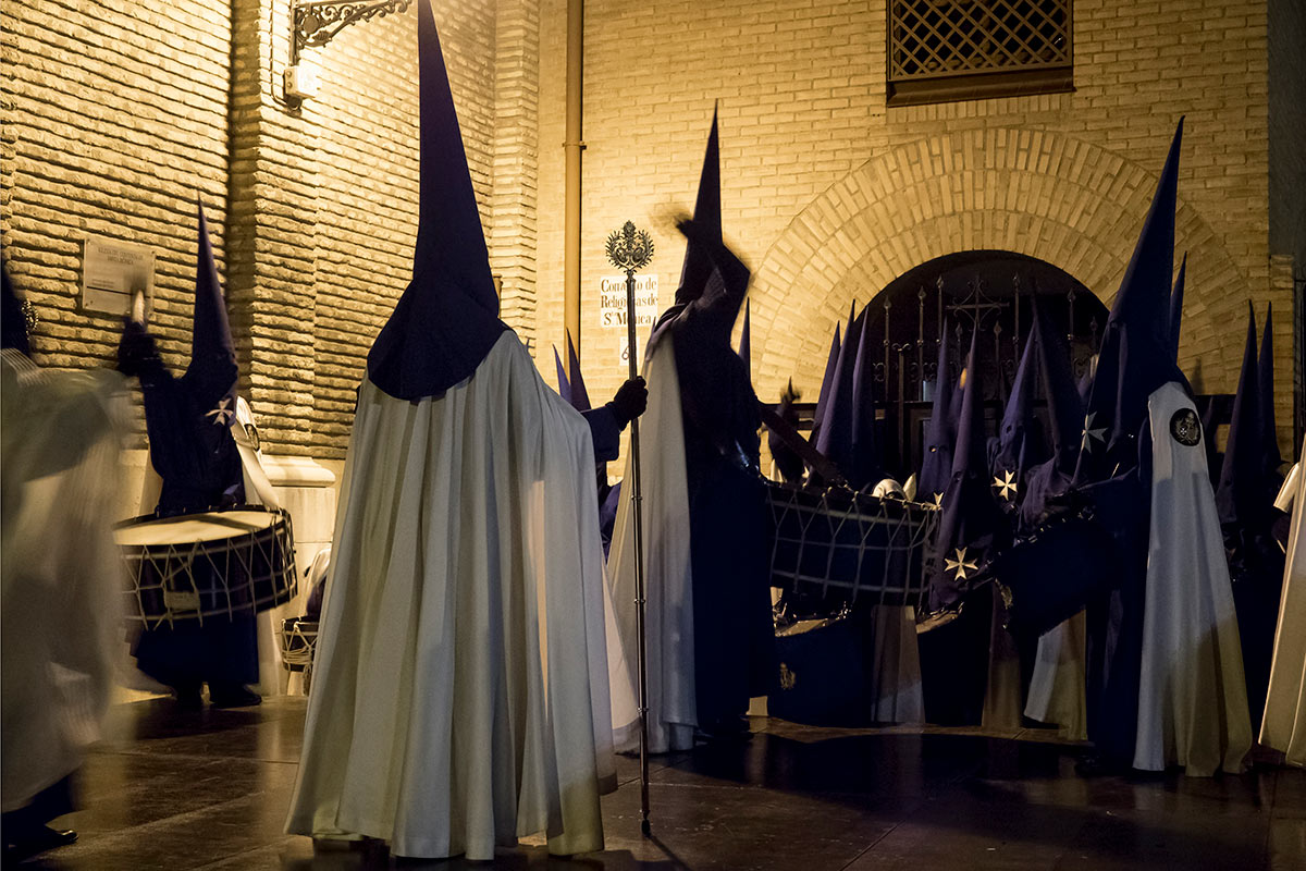 Hacen estación de penitencia el Domingo de Ramos porque van hasta la Santa Iglesia Catedral de la Seo.