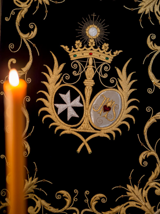 En el palio hay una vela pintada a mano, con una alegoría siempre a los donantes de órganos porque los titulares de la hermandad son patronos de donantes de órganos.